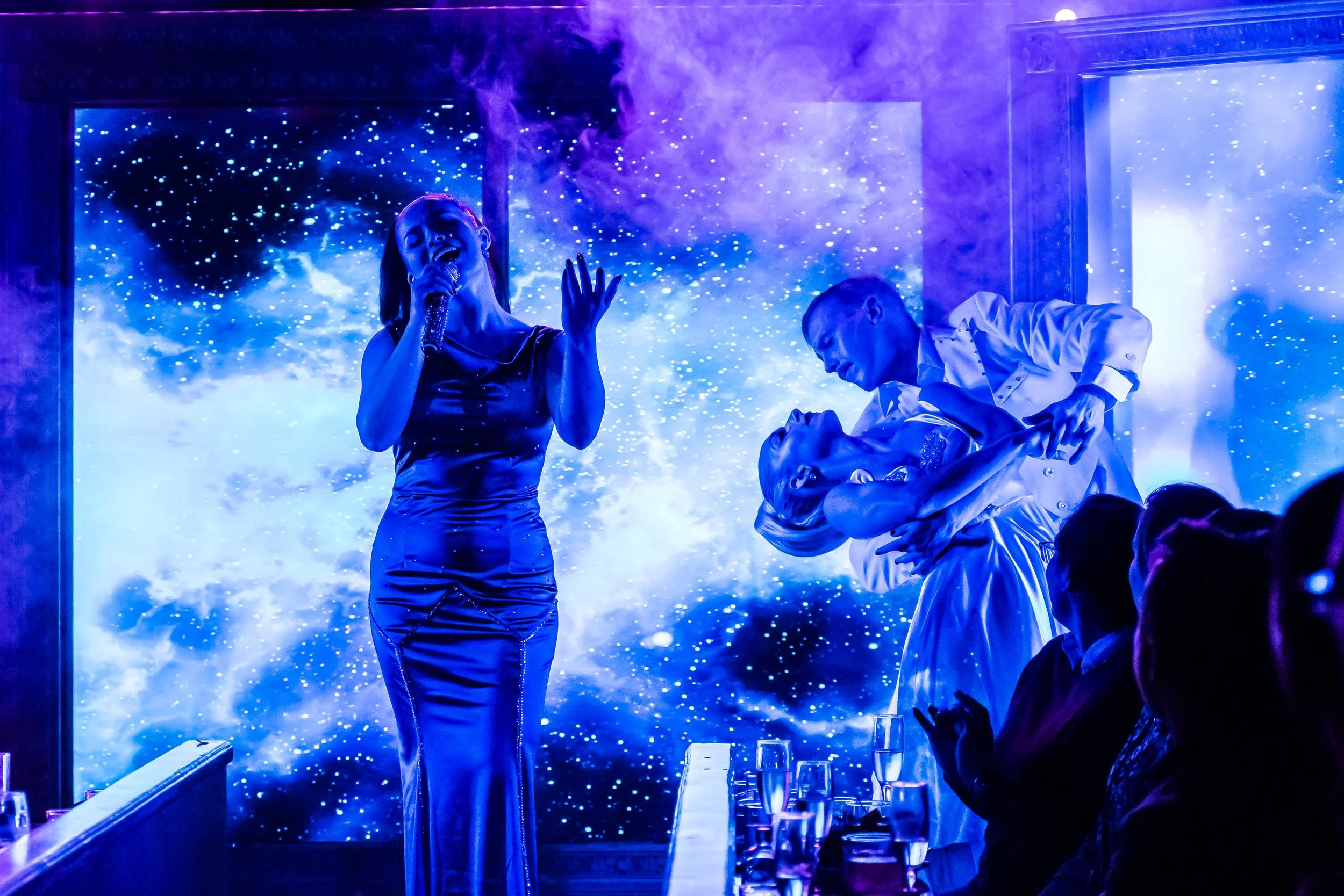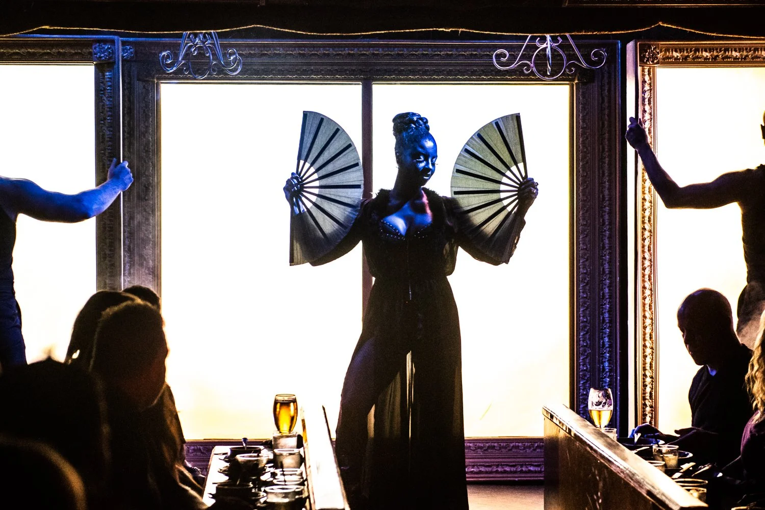 Nate Watters: It’s not a Can Can show without a Jonny and Shadou duet, and what’s better than having Jasmine right up there with them? I love that you can have two different things happening on stage at the same time, and it all comes together and fills the space perfectly. With Jasmine’s vocals and Jonny and Shadou’s chemistry, it’s a powerful shot. I also love all the little details like the glasses and the smoke above Jasmine.