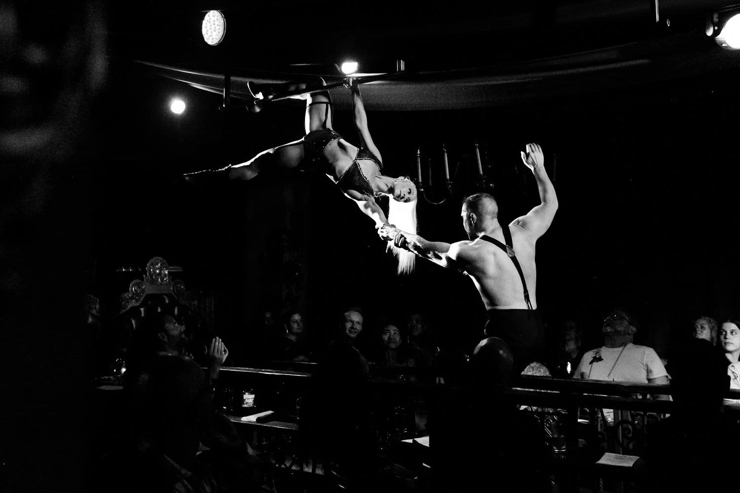 Nate Watters: This is another moment that feels like pure Can Can to me. I love seeing the smiles on audience members' faces during a show. I can't even count how many Can Can shows I've photographed, and every show still blows my mind. It just never gets old. Like, Shadou is just effortlessly hanging upside down from a 10 foot high ceiling and smiling - and she's doing it every single night. On top of that, she's making all of the wardrobe for every show. It's wild.